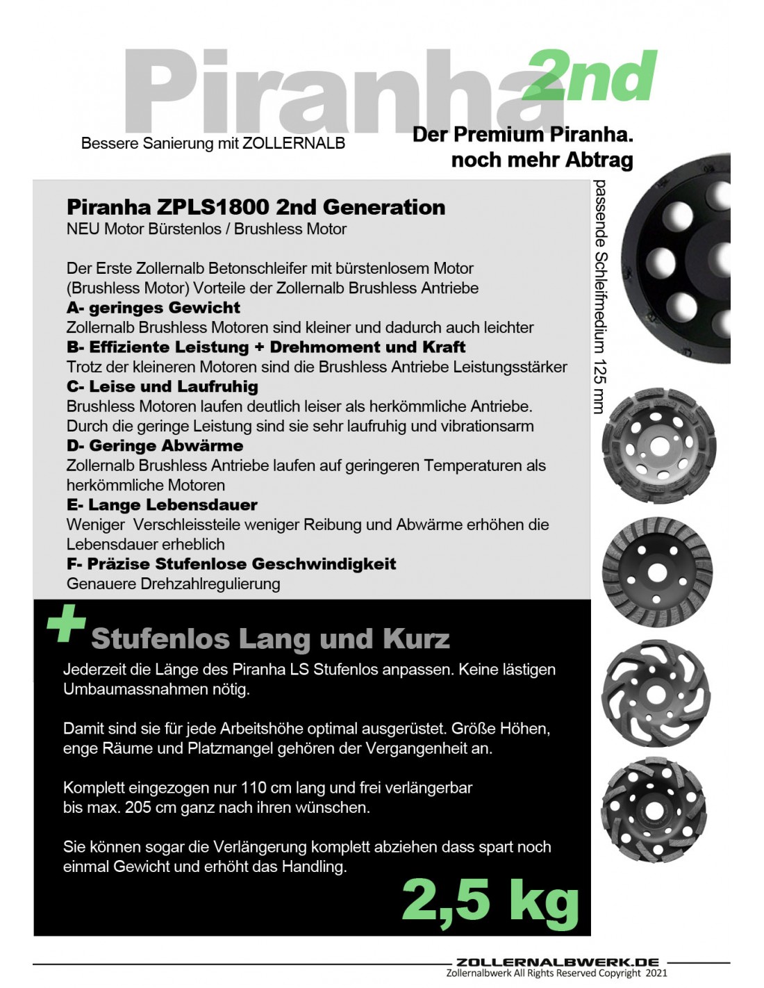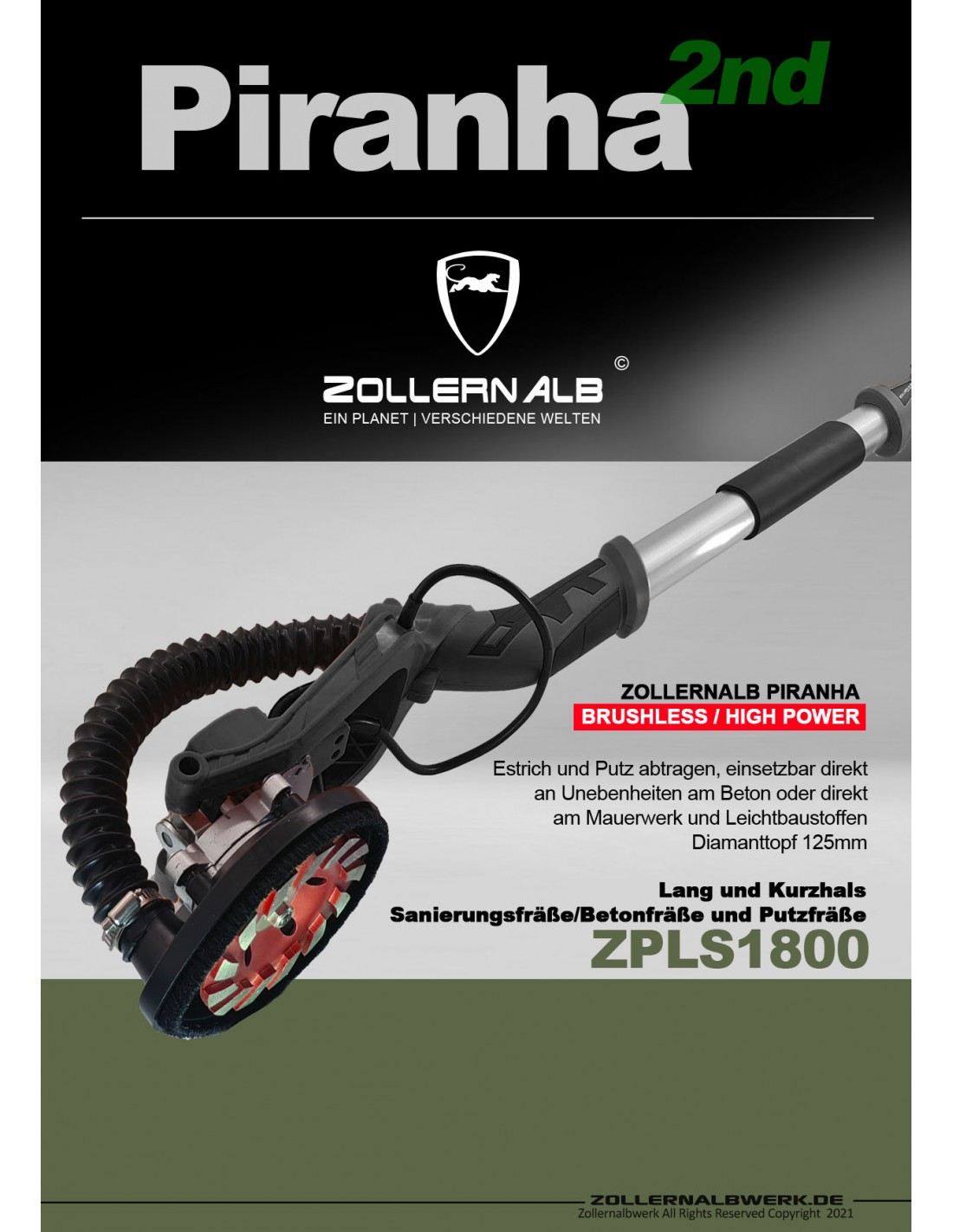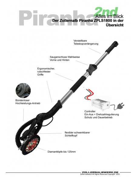 Zollernalb Piranha ZPLS1800 HighPower kort og lang betonsliber betonfræser renovering fræser fræsemaskine 115/125mm