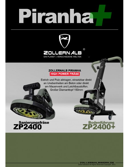 Zollernalb Piranha ZP2400+ renoveringsfræser 150 mm betonsliber med gulvstyrevogn betonfræser gipsfræser gipssliber