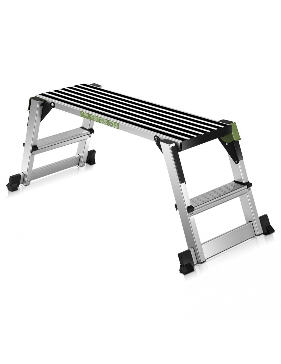 Ova profesionalna radna platforma svestrani je alat za poslove kao što su obrtništvo, bojanje i čišćenje. Zahvaljujući maloj težini, lako ga je nositi. Površina otporna na hrđu osigurava dug radni vijek, dok navlake za 4 noge osiguravaju neklizajući zahvat. Kad je sklopljena, aluminijska radna platforma jednostavna je za skladištenje i transport.