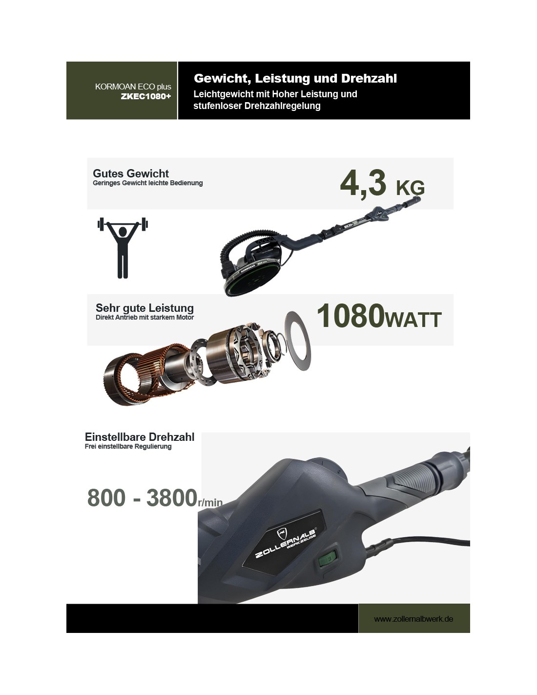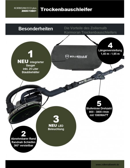 Zollernalb Kormoran ECO+ ZKEC1080 levigatrice a collo lungo levigatrice giraffa + funzione di aspirazione