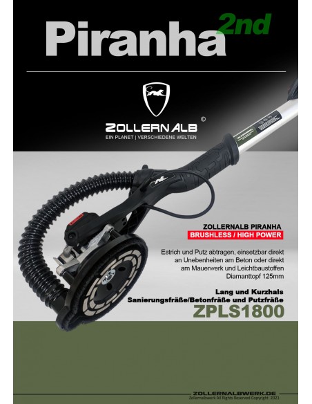 Zollernalb Piranha ZPLS1800 HighPower korte en lange betonslijpmachine betonfrezen renovatiefrees freesmachine 115/125mm