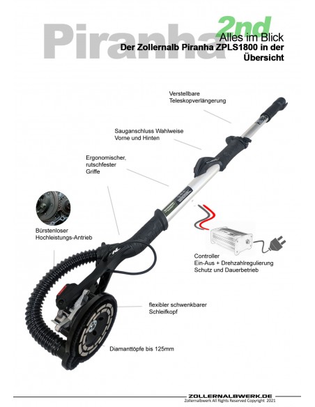 Zollernalb Piranha ZPLS1800 HighPower kort og lang betongsliper betongfres renovering fres fresemaskin 115/125mm