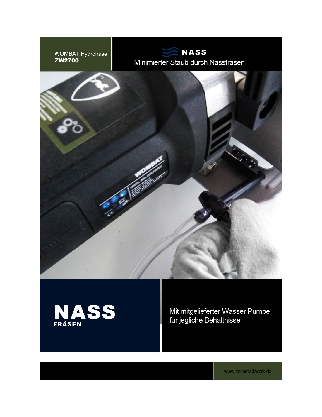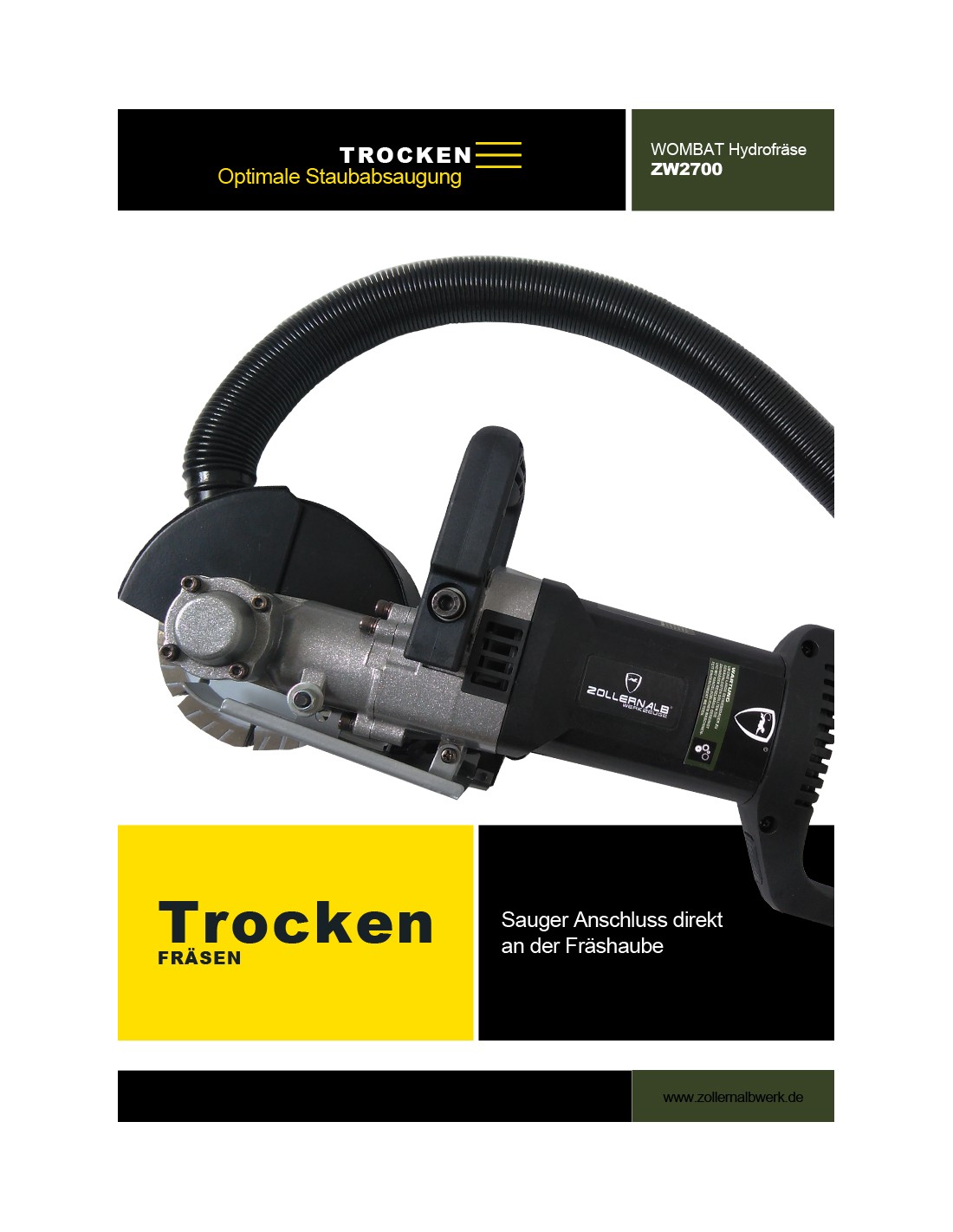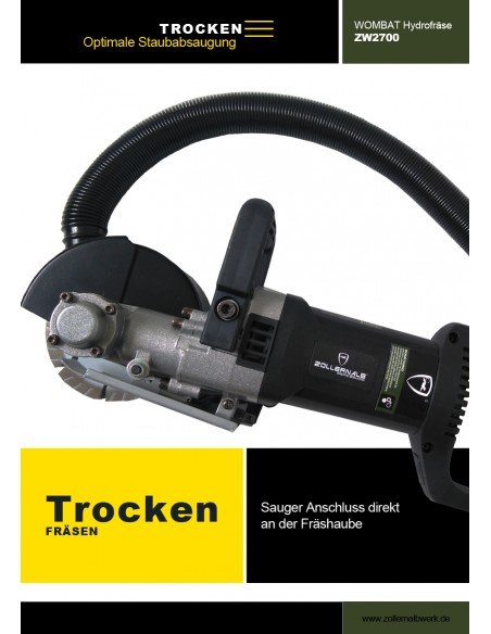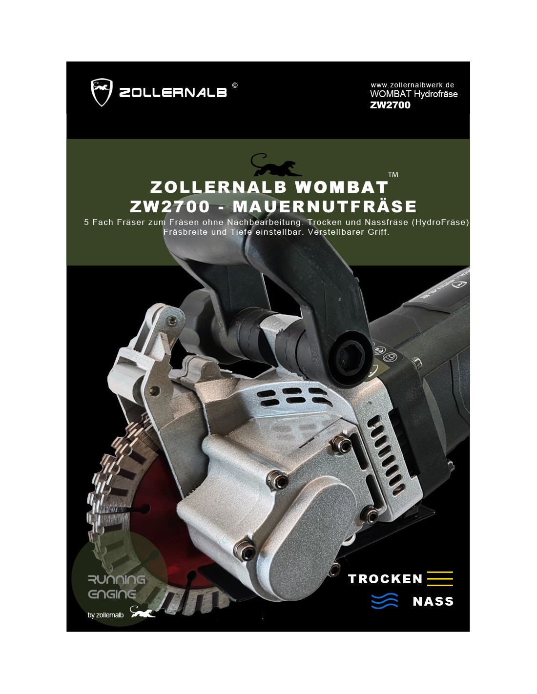 Zollernalb WOMBAT ZW2700 veggjager, også kjent som veggjager eller veggspalter, er et spesialverktøy som brukes til å lage skjøter for rør eller kabler i mur som kalkstein, gipsblokker, Ytong eller porebetong, murverk og murstein