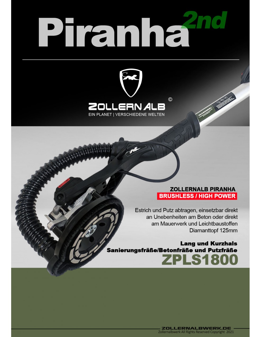Zollernalb Piranha ZPLS1800 HighPower krótka i długa szlifierka do betonu frezarka do betonu frezarka renowacyjna frezarka
